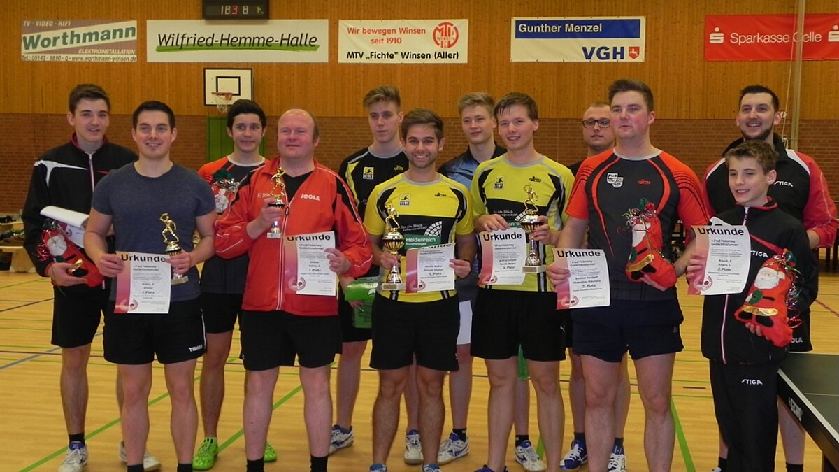Die Spieler mussten viel Kraft aufwenden um die doppelte Tischlänge im Vergleich zum gewöhnlichen Tischtennis zu überwinden. Für einige Teilnehmer aus dem weiten Feld der 13- bis ca. 60-jährigen war der Muskelkater für die nächsten Tage vorprogrammiert. Sieger im Vergleich am Vormittag wurden Malte Constabel und Tobias Woitschek vom Gastgeber MTV „Fichte“. Am Nachmittag setzten sich Andreas Oetken und Jannik Weber vom VfL Westercelle durch.