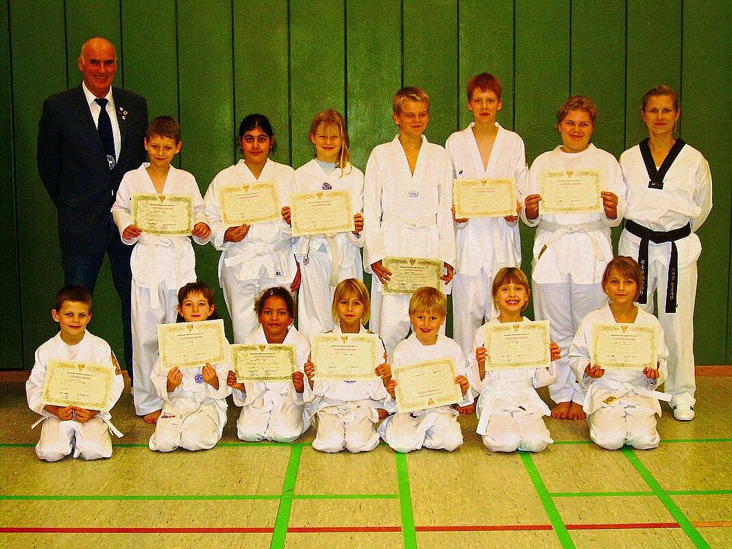 Die Schüler sind jetzt Träger des 9. Kup. Trainerin Isabell Menzel nimmt nun wieder neue Anfänger auf. Dienstags von 15-16 Uhr können Schulkinder und Jugendliche in der Sporthalle am Friedhofsweg mittrainieren.