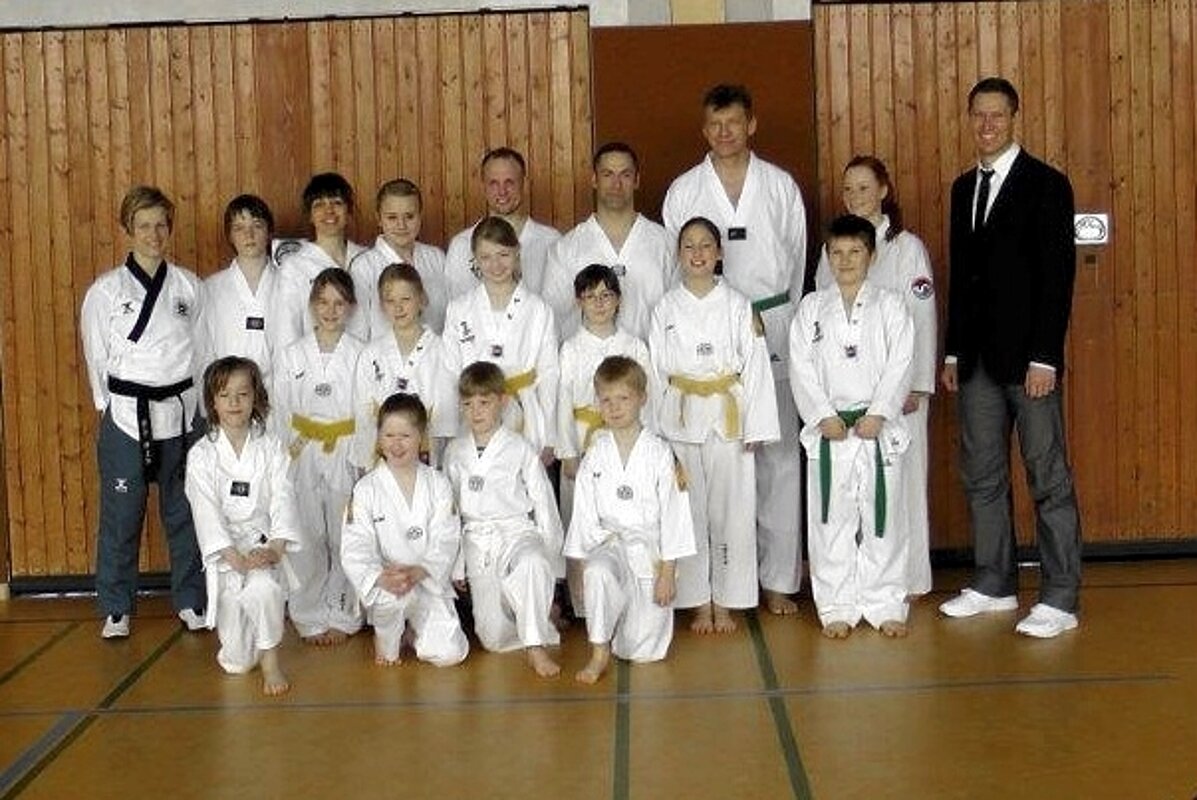 Er prüfte 17 Schüler von Trainerin Isabell Menzel in den Disziplinen Grundtechniken, Formenlauf, Kampf, Partnerübungen, Selbstverteidigung und Bruchtest. Auch z.T. kniffligen Fragen rund ums Thema Taekwondo in der Theorieprüfung mussten sich die Teilnehmer stellen.