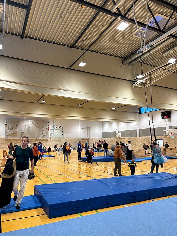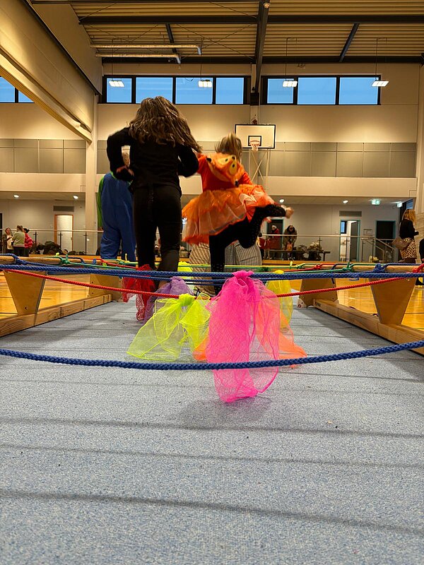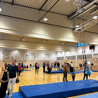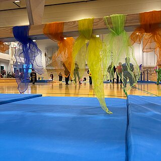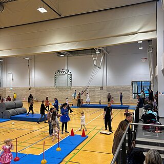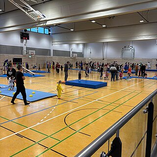 Zu Beginn gab es eine klassische Polonaise durch die Halle. So konnten direkt die vielen verschiedenen Aufbauten bestaunt werden. In 90 Minuten Turnzeit schwangen die Kinder an den Ringen, balancierten über Bänke und Stufenbarren, sprangen und rutschten.