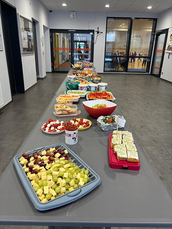 Als Belohnung für einen vollen Laufzettel gab es eine bunte Süßigkeit. Zur weiteren Stärkung stand – Dank vieler fleißiger Eltern – ein umfangreiches Buffet für Groß und Klein bereit. Allen Unterstützer*innen möchten wir an dieser Stelle einen herzlichen Dank aussprechen!