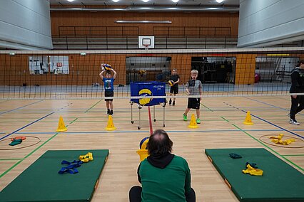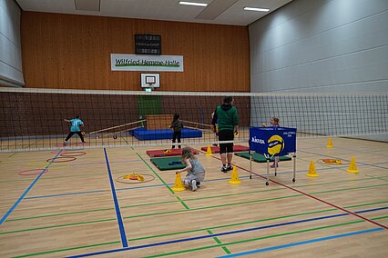 Leonie Müller und Roland Bittner vom SSV Südwinsen – Volleyballsparte – hatten sich ebenfalls mehrere kleine Aufgaben für die Kinder überlegt, um ihnen spielerisch einige Grundfertigkeiten des Volleyballsports näherzubringen. Ein kleiner Wettstreit zwischen den beteiligten Teams erhöhte bei den Kindern selbstverständlich noch ein bisschen die Begeisterung.