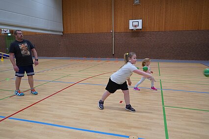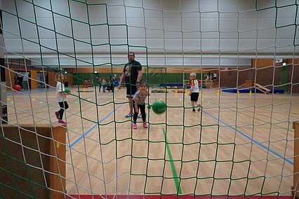Bei Christian Blum – Abteilungsleiter Handball – hatten die Kinder genauso viel Spaß. Auch hier wurden den Kindern auf spielerische Art und Weise an unterschiedlichen Stationen kleine Aufgaben gestellt, die es zu bewältigen galt. Slalomlaufen, Hüpfen, Werfen, Zielen und Treffen bereitete den Kindern viel Freude.