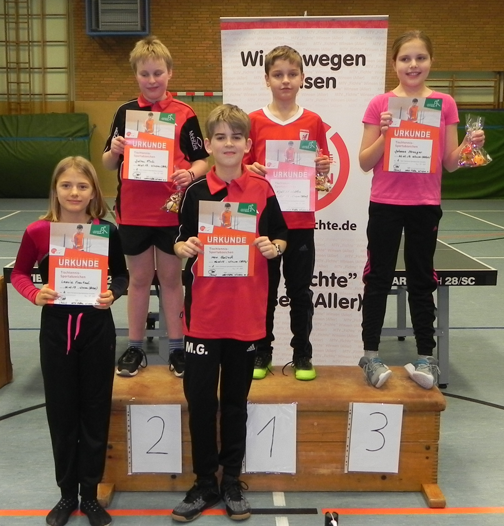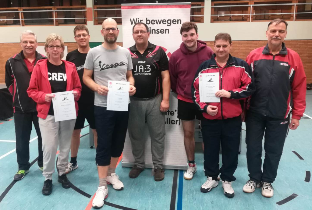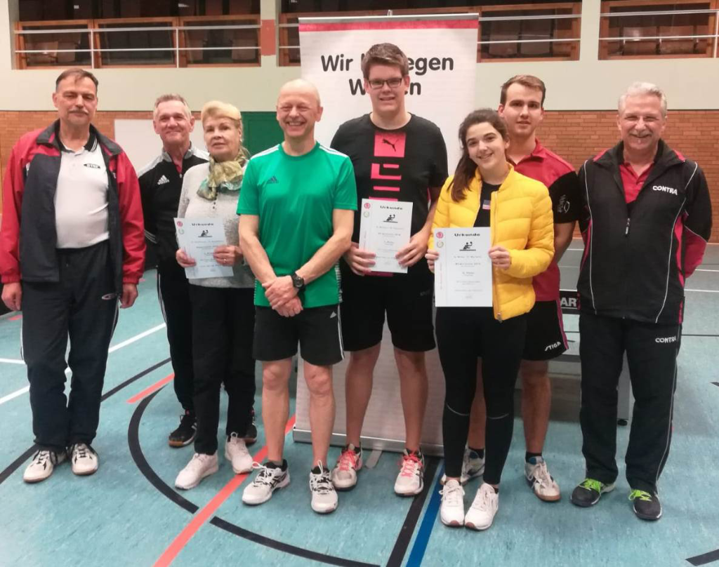 Die Beginner hatten die Möglichkeit das Tischtennis-Sportabzeichen abzulegen. Hierbei handelt es sich um Balance-, Kontroll-, Geschicklichkeits-, Ziel-, Effet- und Platzierungsübungen. Hier zeigten Kjell Schmidtke und Johanna Strenger die besten Leistungen.