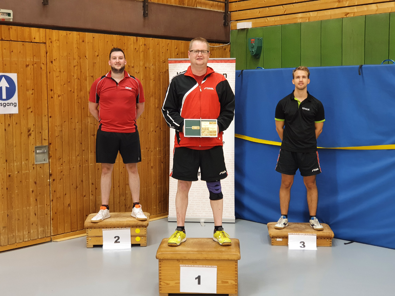 Es wurde zunächst in vier Gruppen gespielt und dann weiter im Hauptfeld mit K.O.-Runde und Trostrunde. Am Ende setzte sich Florian Büsching vor seinem Mannschaftskameraden Christian Thiemann im Finale durch. Den dritten Platz belegte Christoph Wyrwich.